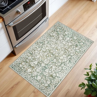 Glattice Washable Entryway Rugs 3x5 Area Rugs, Sage Green Beige